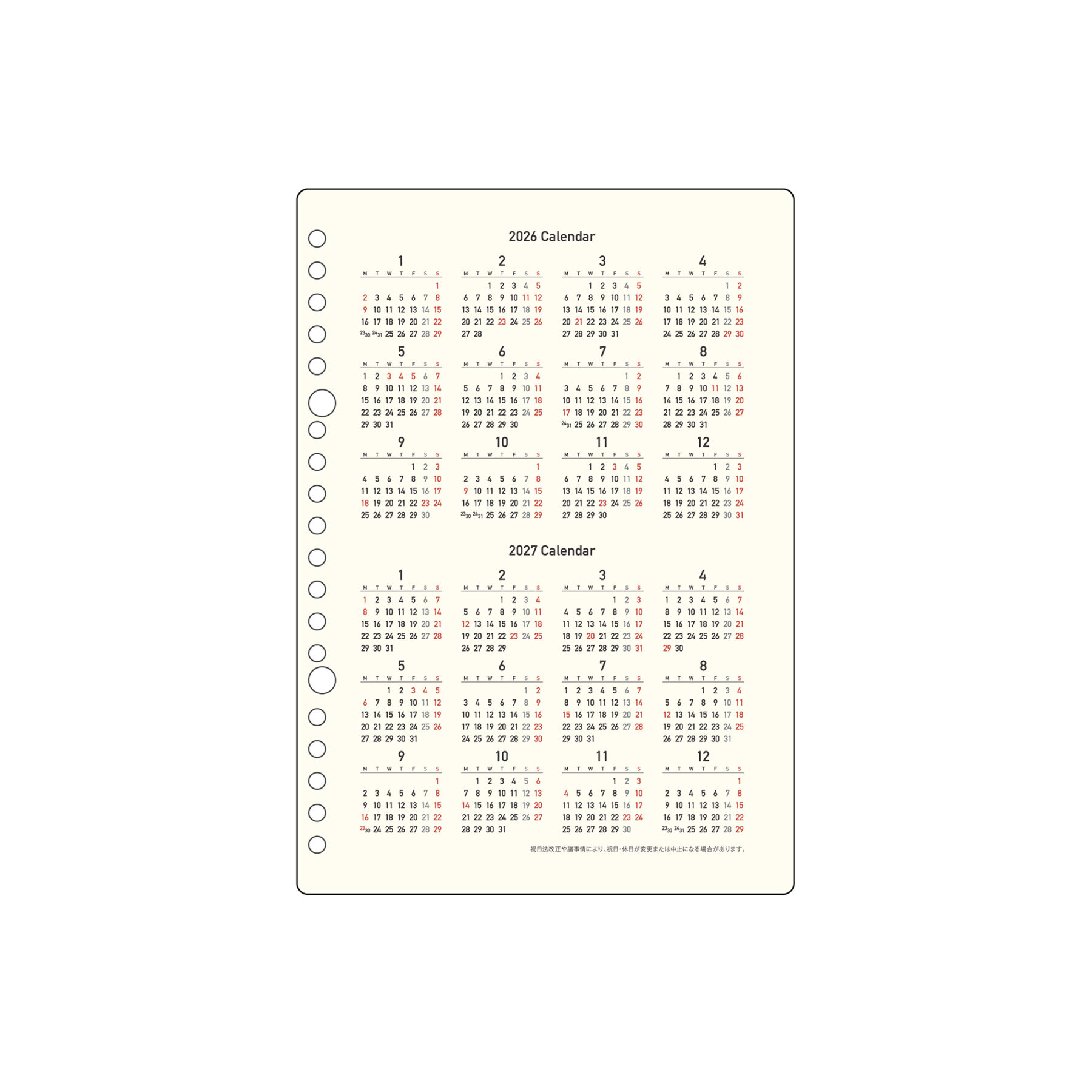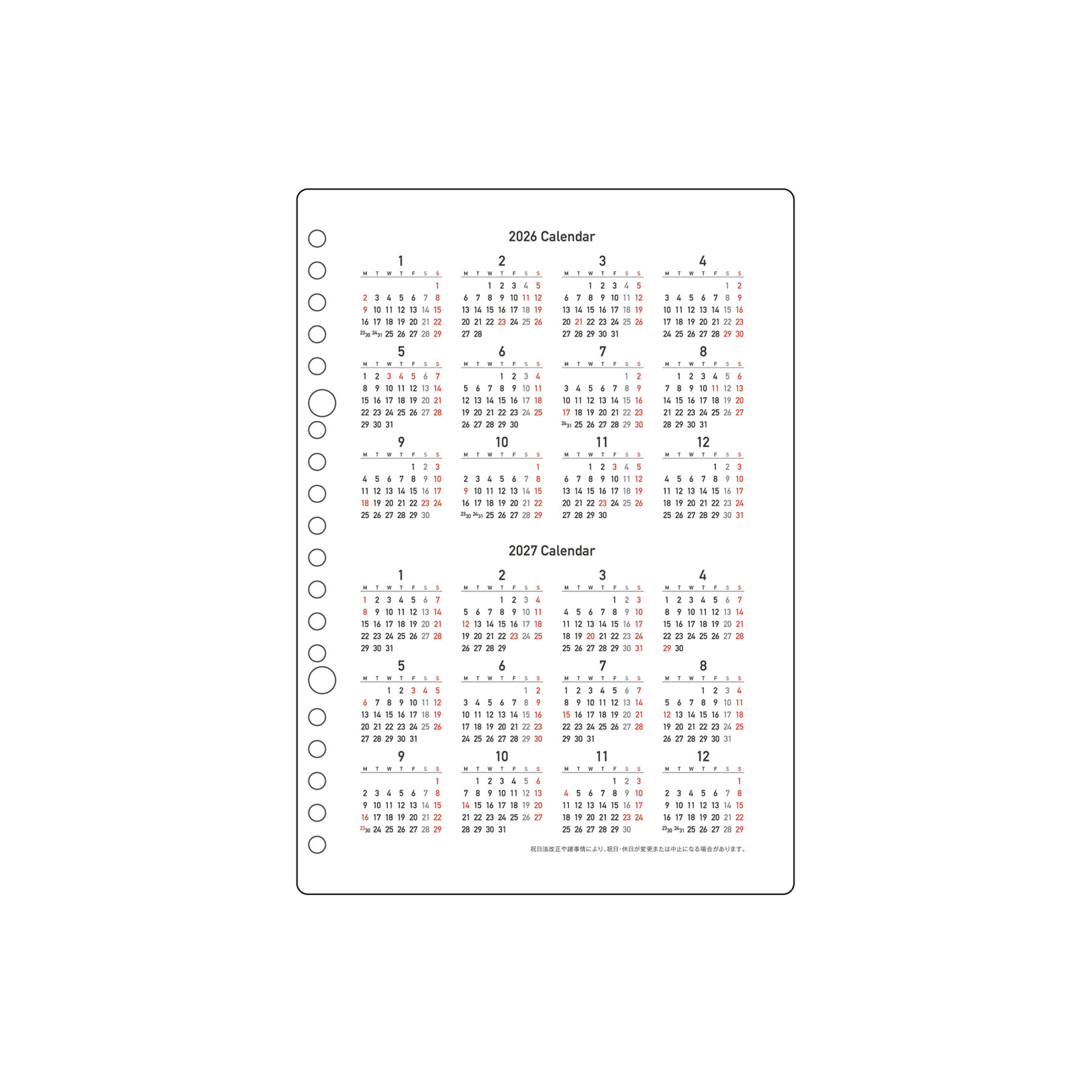 ・2026/2027年間カレンダー