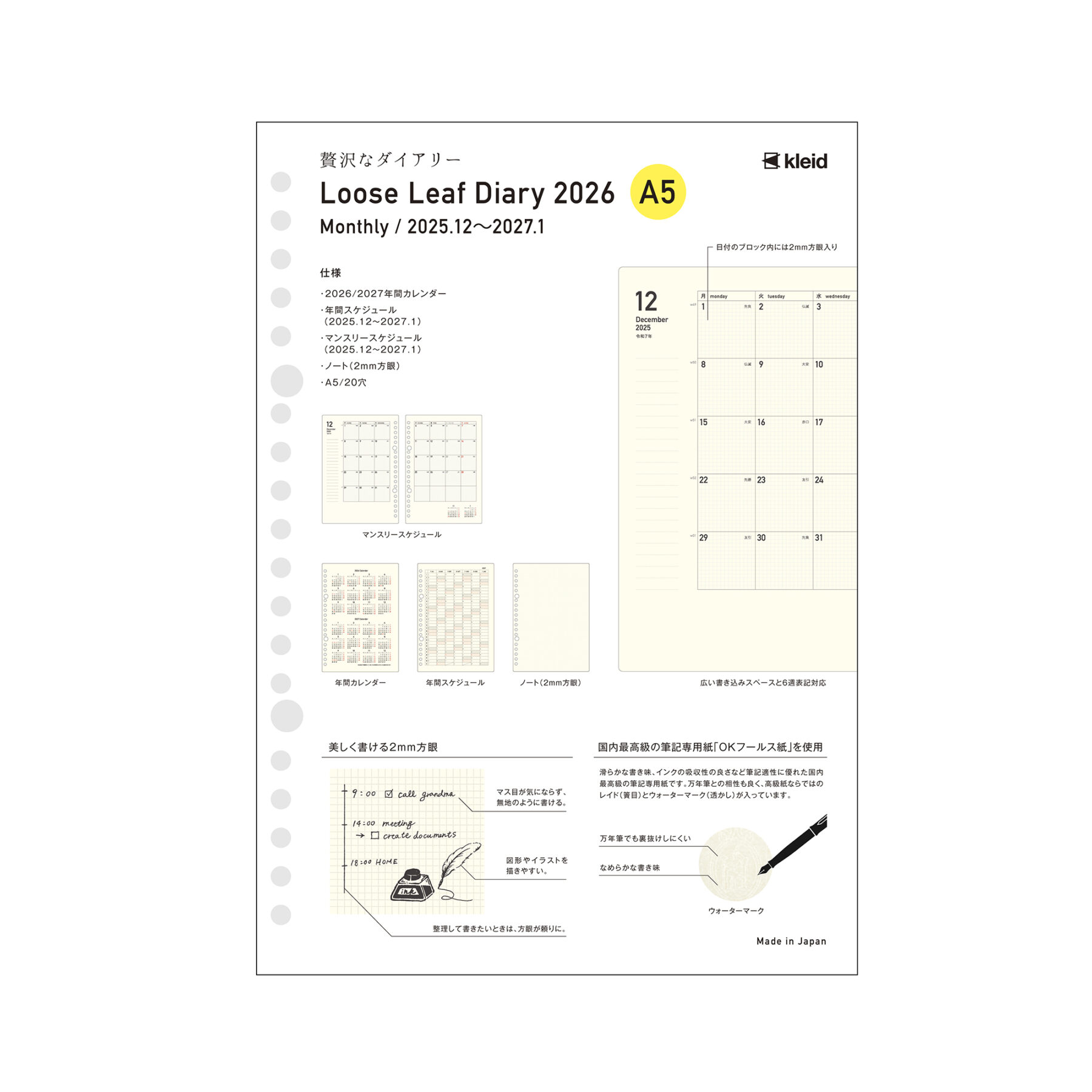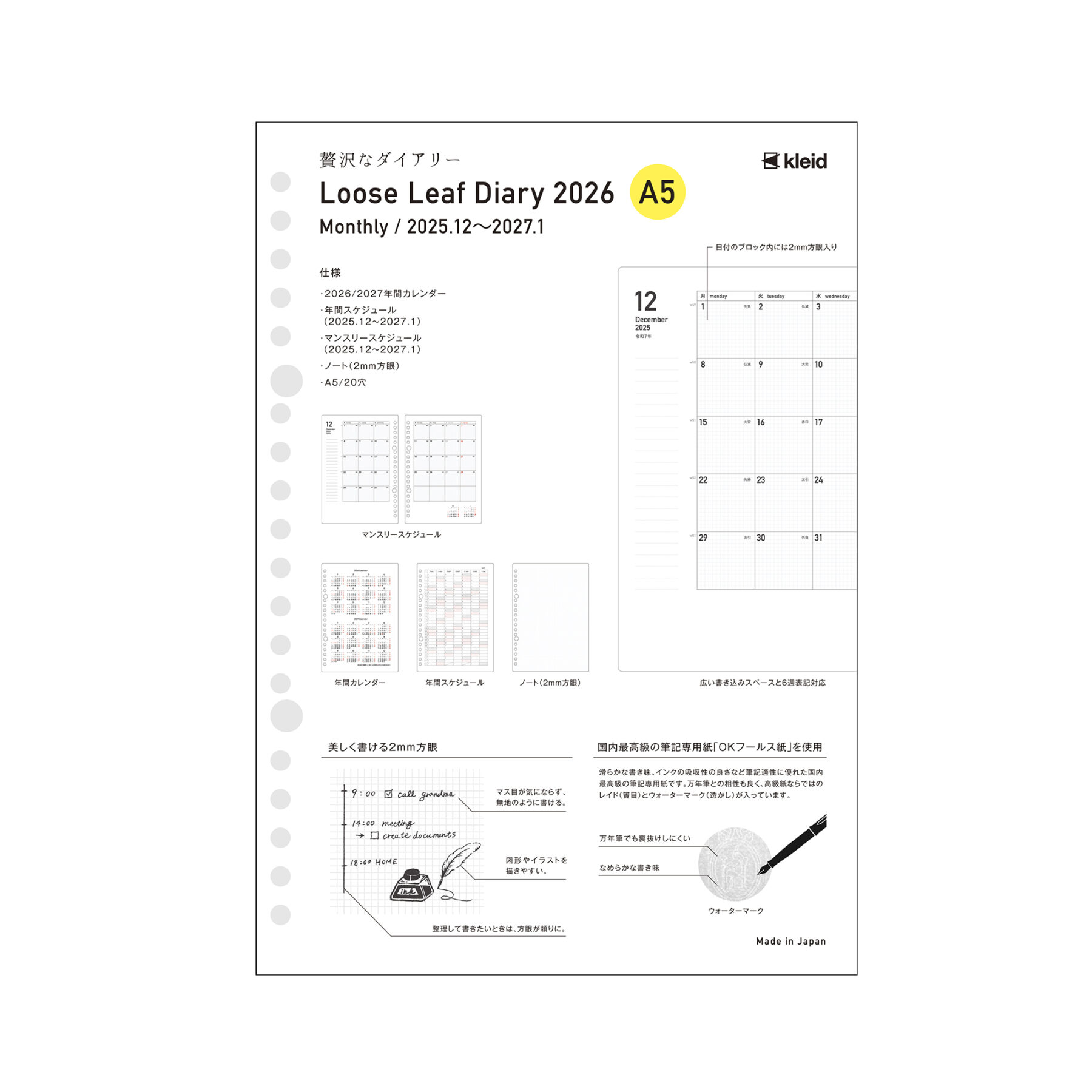 2mm grid loose leaf A5のダイアリー版