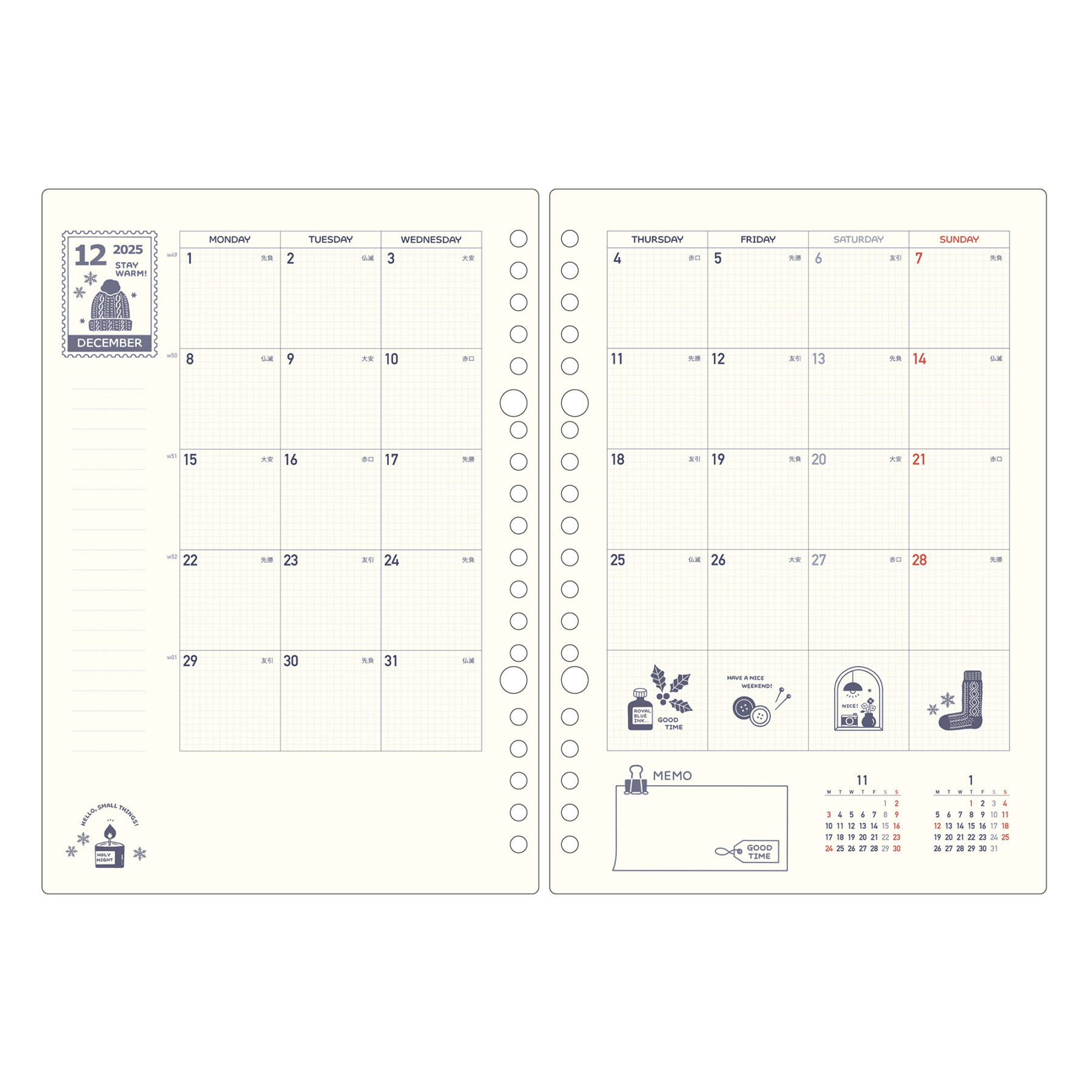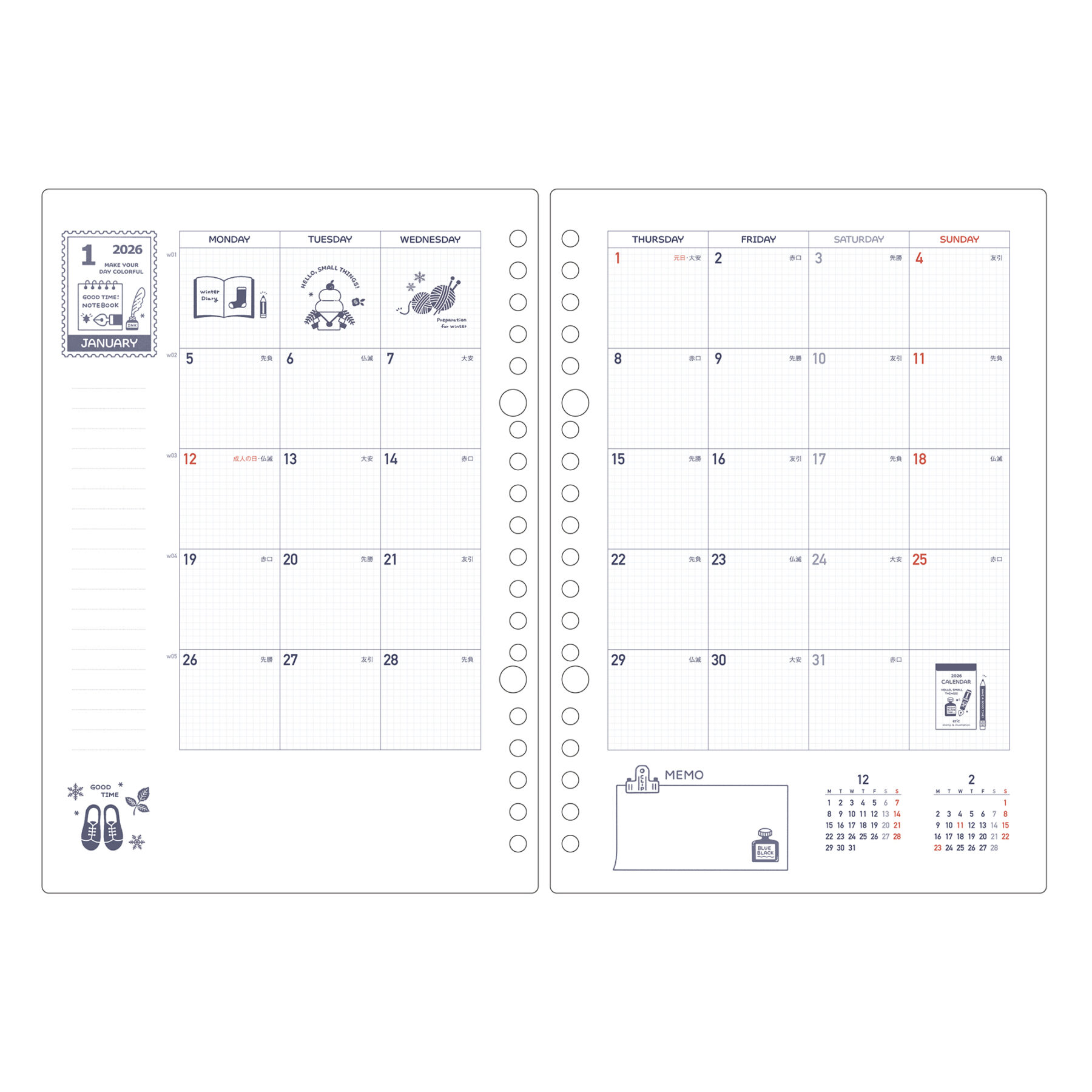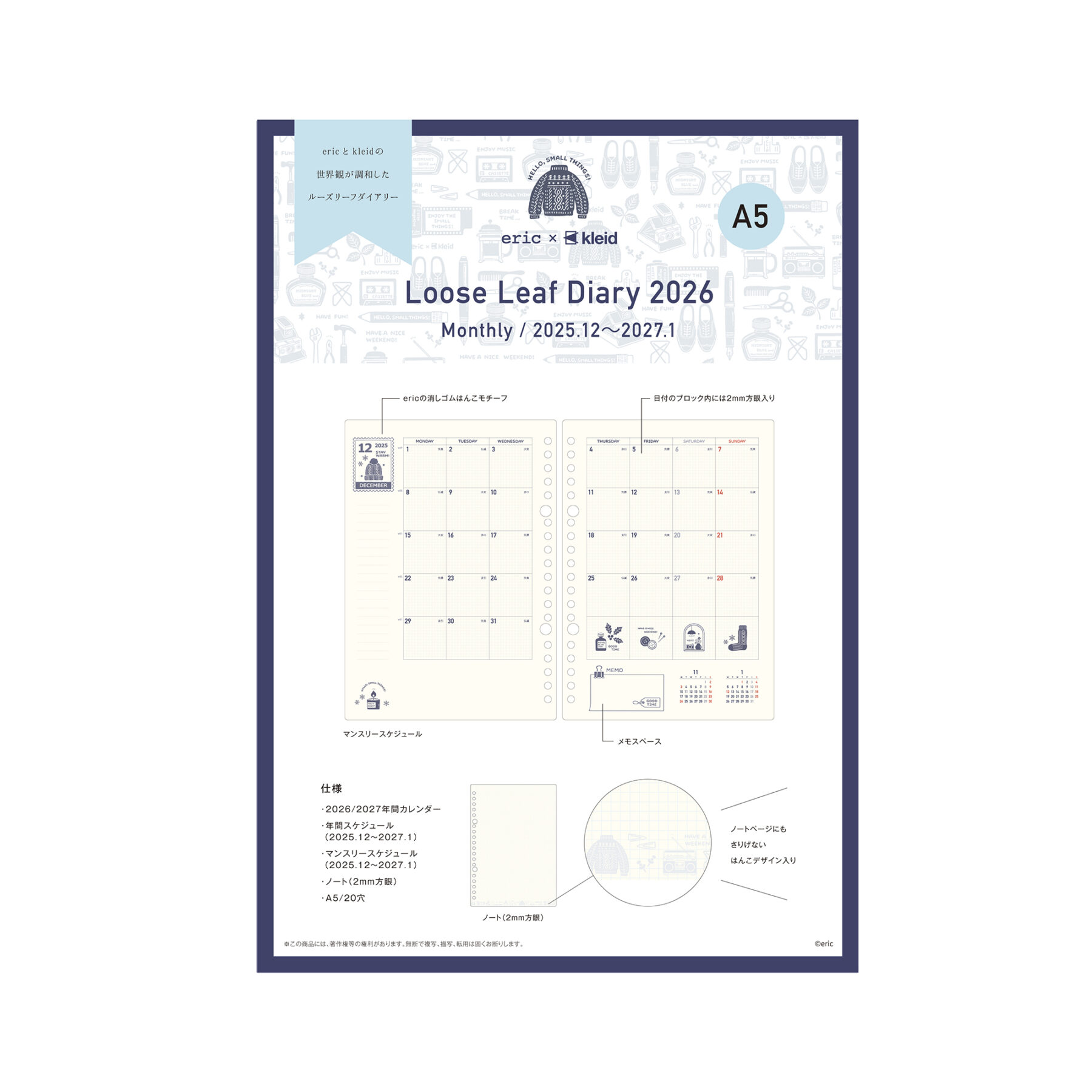 昨年ご好評いただいたericとkleidルーズリーフダイアリーのコラボレーションが今年もデザインを一新して登場。定評あるkleidのマンスリーデザインにericのモチーフが彩りを添えます。2026年版は待望のホワイト紙が新登場。
