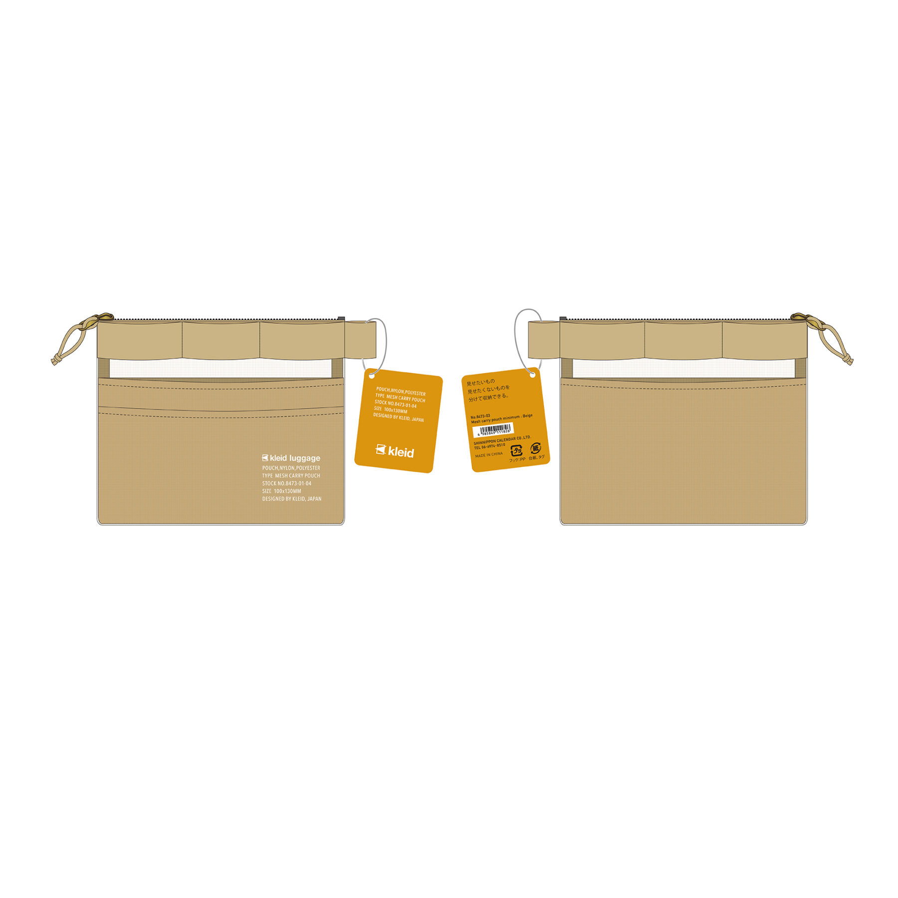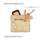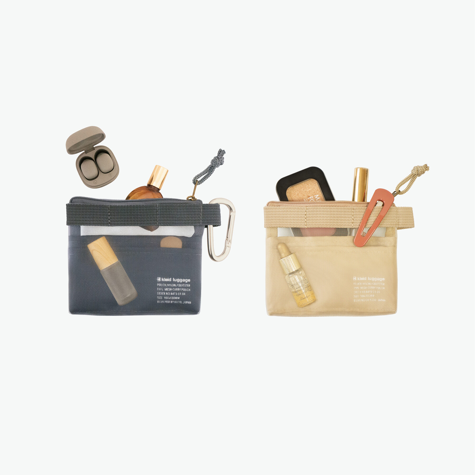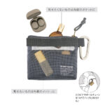 見せたいものをメッシュ(外側)に、見せたくないものをポケット(内側)に使い分けて収納可能。バッグの中で埋もれてしまう小物を収納するのに最適です。カラビナやボールチェーンをつけてバッグに外付け可能。