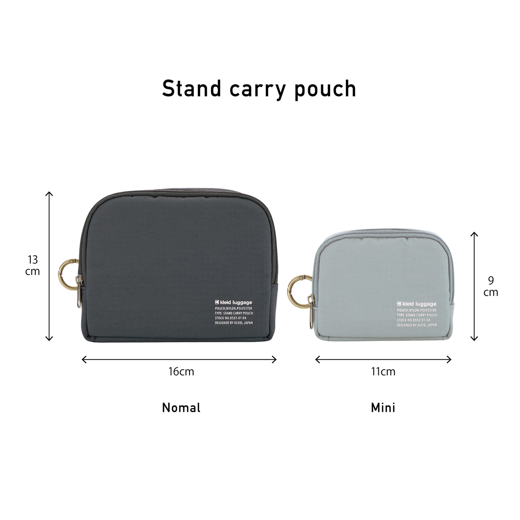 広いマチで自立する、スマホスタンドにもなるミニポーチ