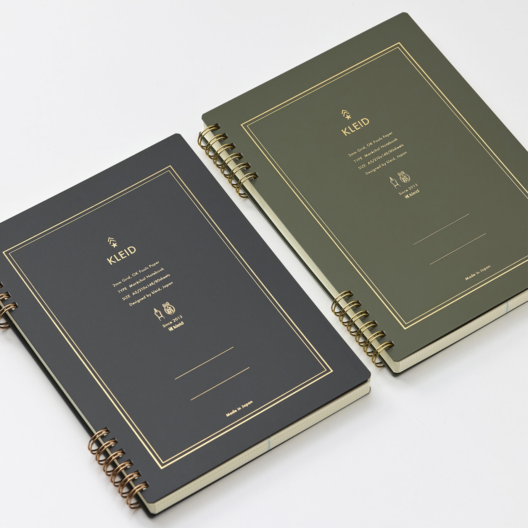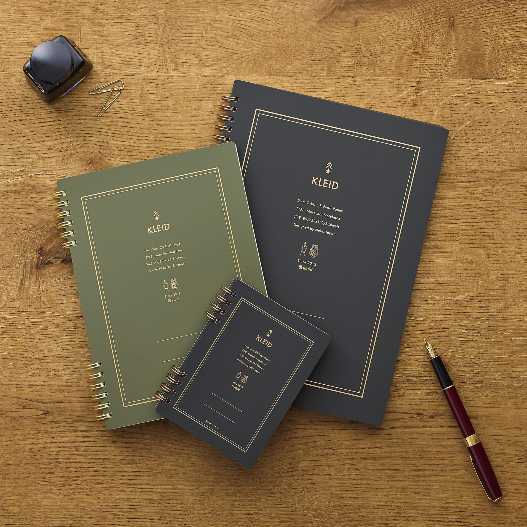 高級感のある全面箔が目を引く表紙は、丈夫で耐久性に優れたPP素材を使用。高級筆記専用紙「OKフールス紙」に、ページ分割可能なガイドが付いた2mm方眼。手に当たらず書きやすいリング製本など、充実の機能をクラシカル且つモダンに仕上げた、kleidのニューアイコンとなるノート。コンパクトで程よいサイズ感のB6サイズ。全2色5型展開。