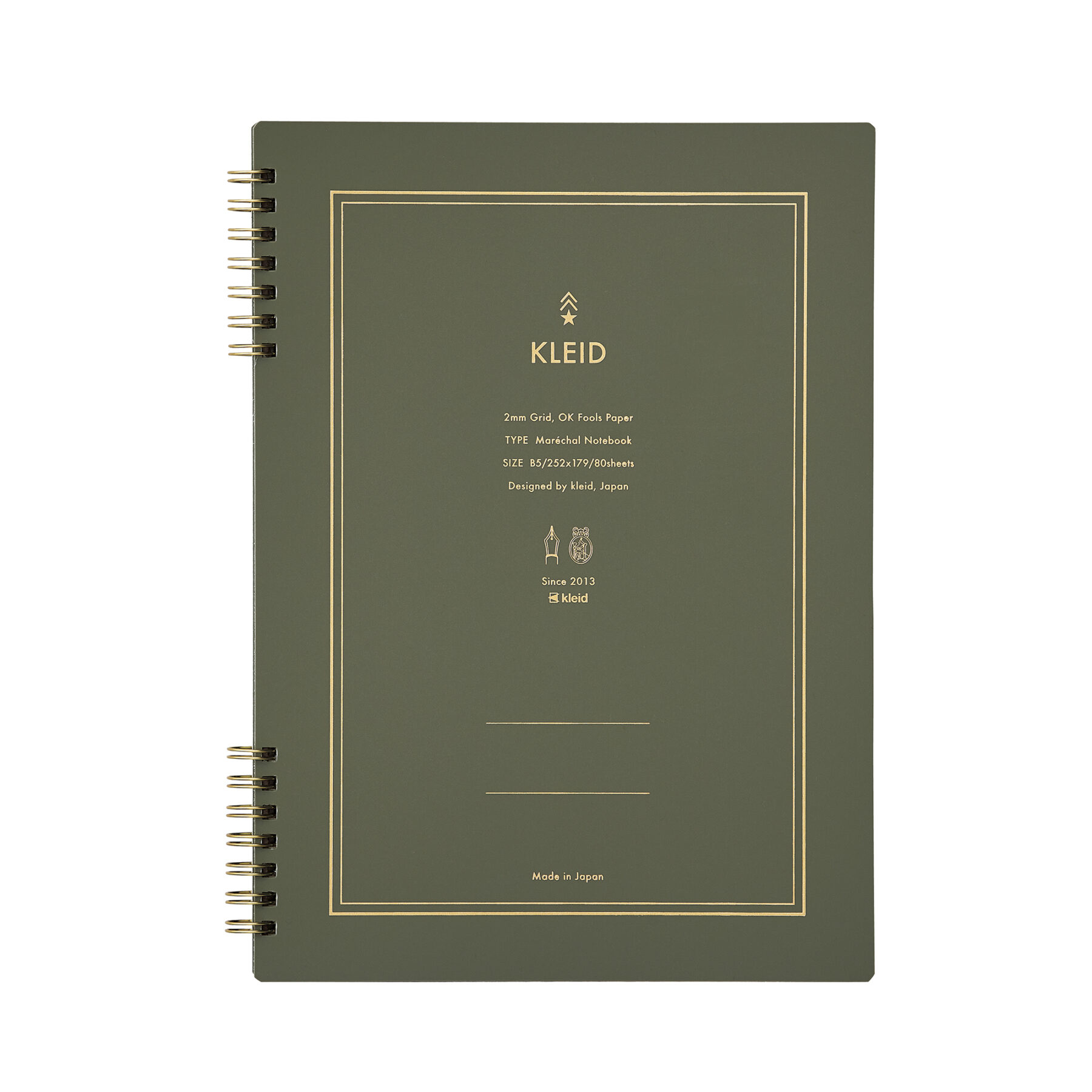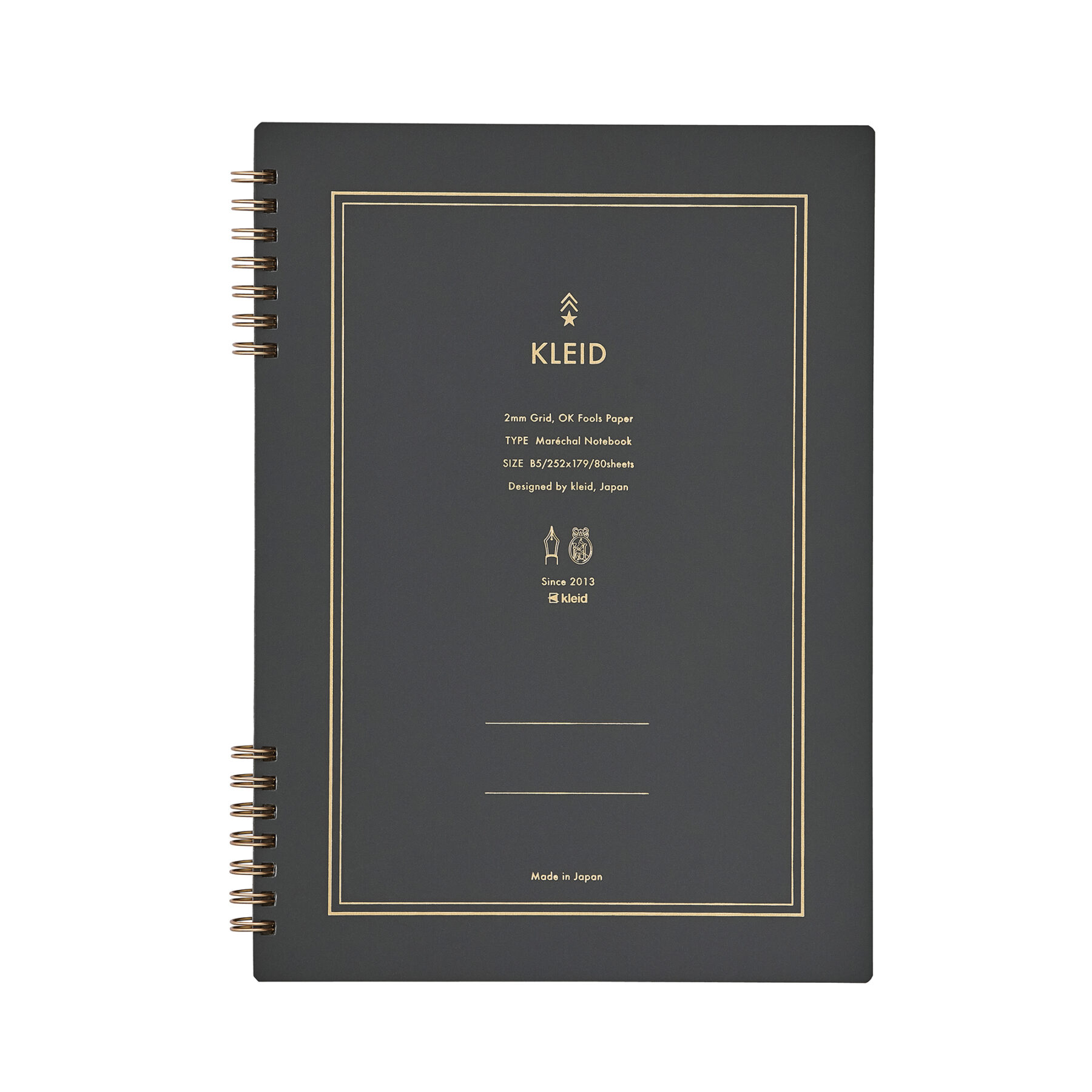 高級感のある全面箔が目を引く表紙は、丈夫で耐久性に優れたPP素材を使用。高級筆記専用紙「OKフールス紙」に、ページ分割可能なガイドが付いた2mm方眼。手に当たらず書きやすいリング製本など、充実の機能をクラシカル且つモダンに仕上げた、kleidのニューアイコンとなるノート。デスク使いや在宅ワークの方にもおすすめのB5サイズ。全2色5型展開。