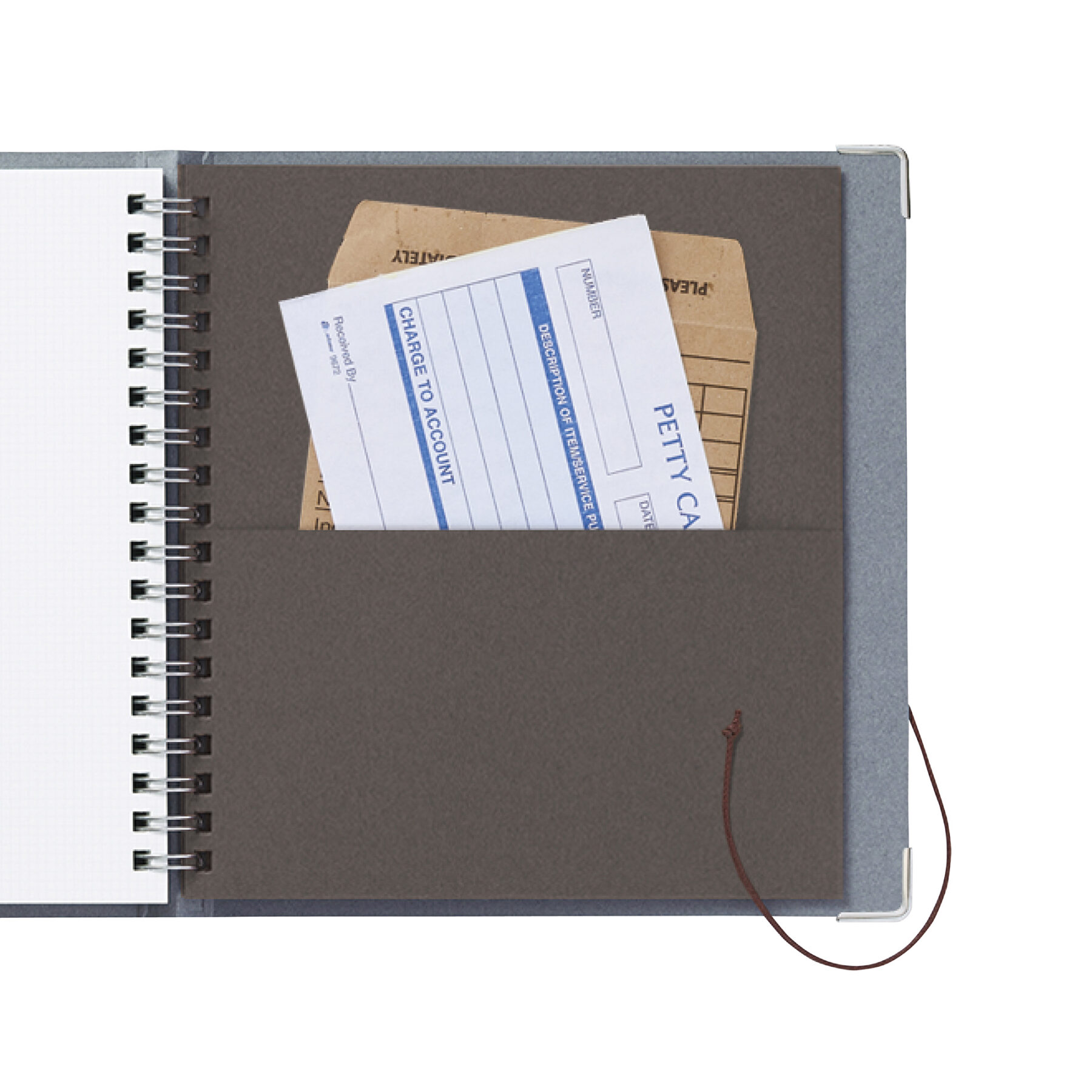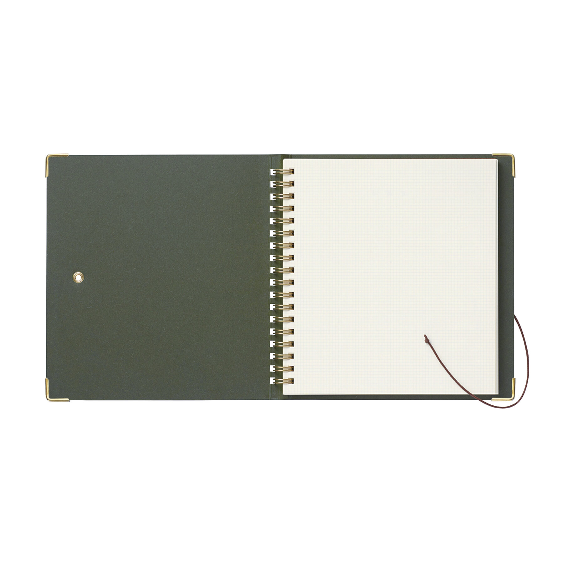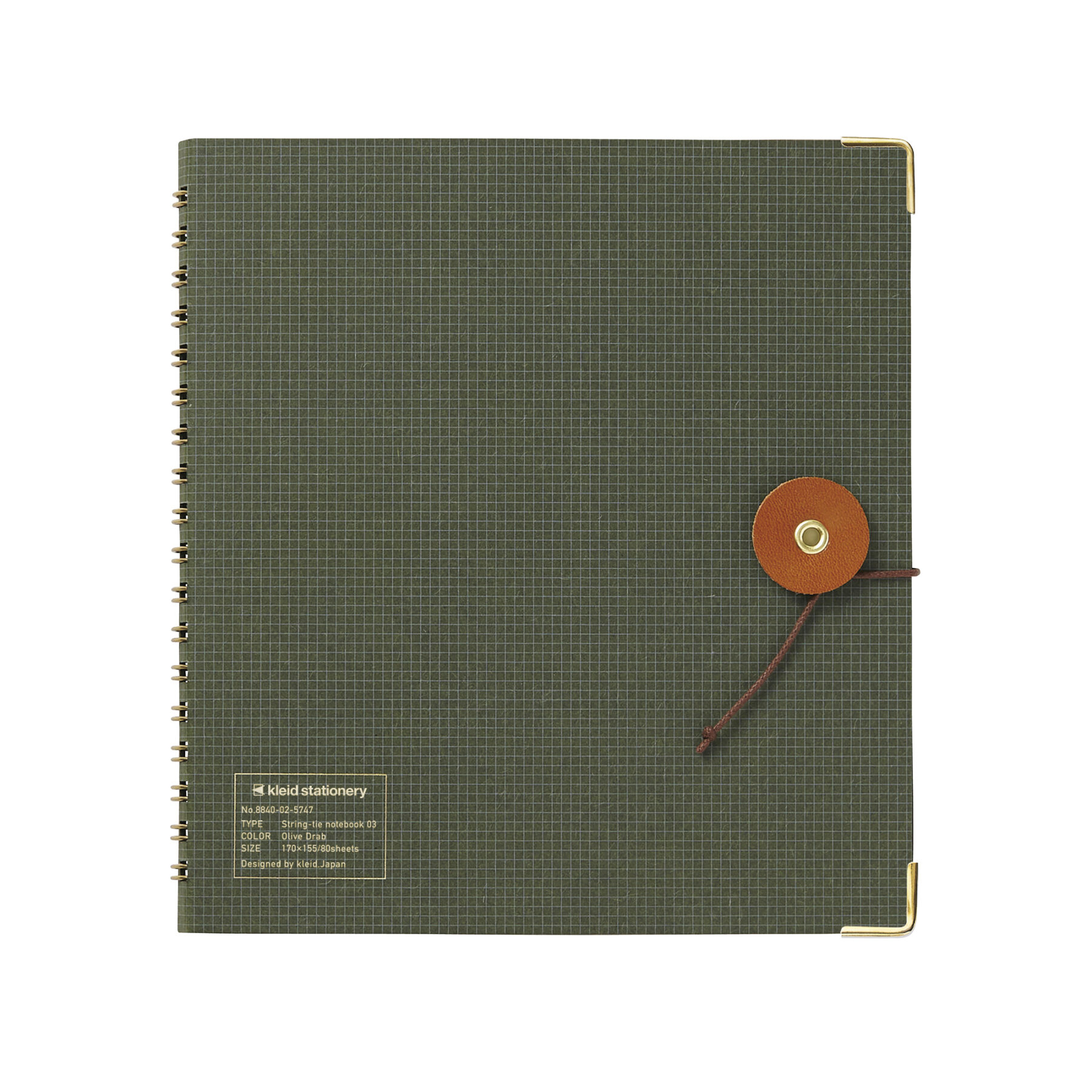 使い込む程に味の出る表紙に高品質な栃木レザーの丸留めを採用。角の保護にもなるコーナー金具がアクセントに。「OKフールス紙」と「2㎜方眼」の要素はそのままに、巻末には両面ポケットも付属。細部まで隙のないディテールは長い付き合いを保証する本格ノート。