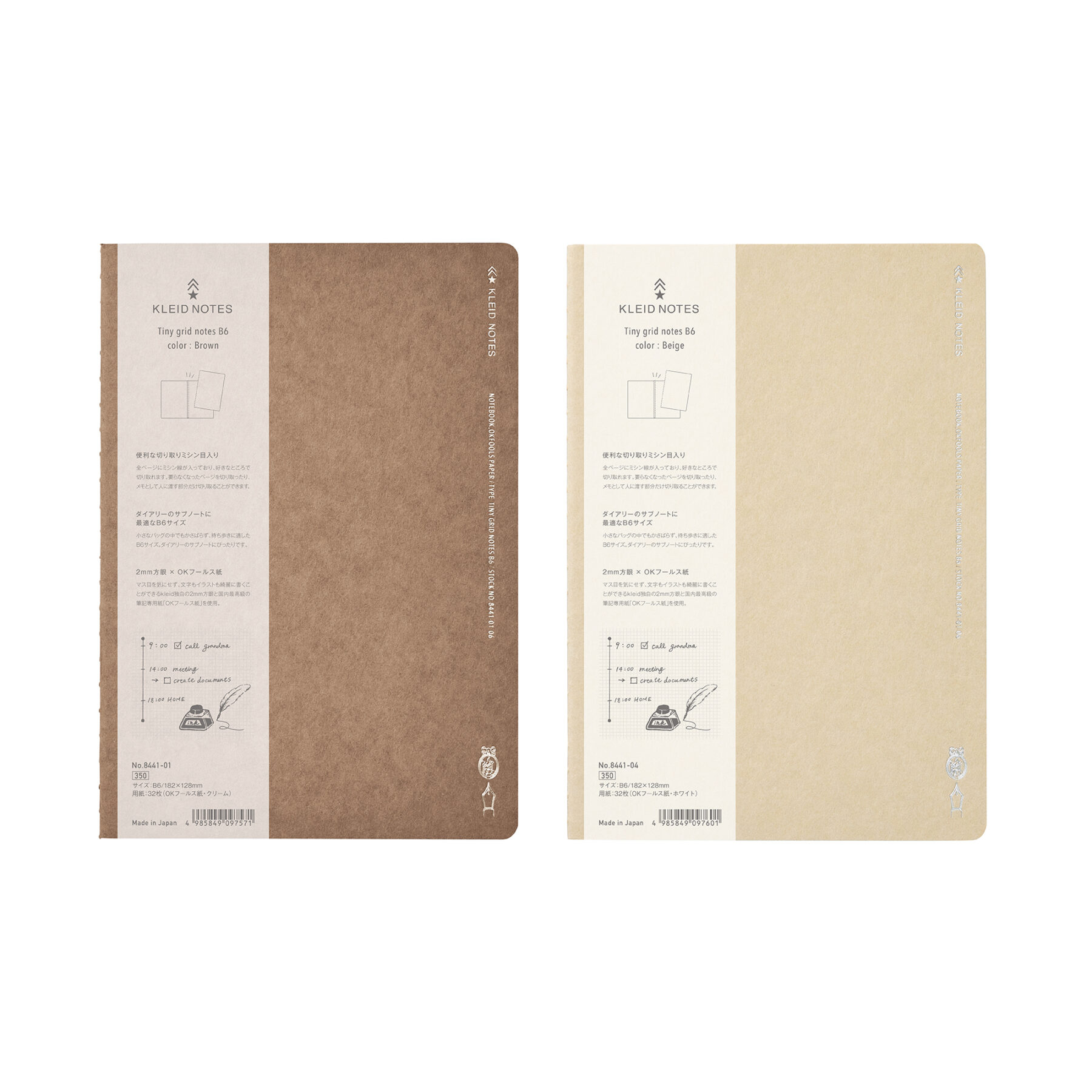 kleidの定番である2mm方眼ノートにB6サイズが仲間入り。小さなバッグにも入れやすく、手帳のサブノートにも最適。モコモコとした手触りの表紙や方眼の色使いをやさしく上品に仕上げました。便利な切り取りミシン目入り。